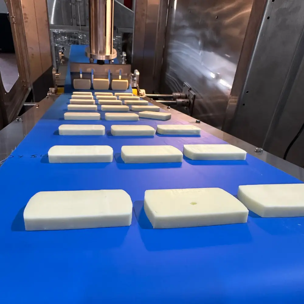 Göbek Kaşar Ultrasonik Dilimleme görselleri, sert yapılı peynirlerde elde edilen kusursuz kesimi yansıtır. Ultrasonik peynir dilimleme makinesi, göbek kaşarı eşit kalınlıkta dilimler halinde keser. Peynir Dilimleme teknolojisi sayesinde ürün formu korunur. Galeride, seri üretime uygun kaşar dilimleme örnekleri yer almaktadır. Göbek kaşar ultrasonik dilimleme performansı net biçimde incelenebilir.
